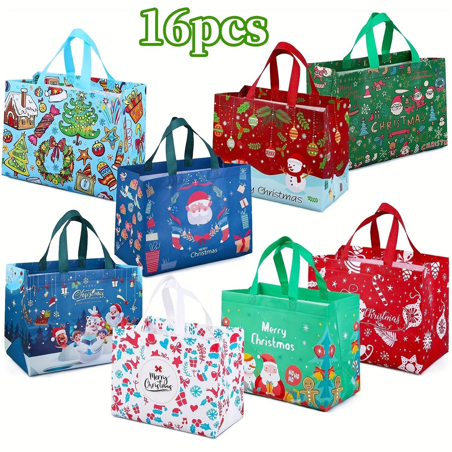 16pcs Large Christmas Gift Bags with Handles | Festive, Sturdy, and Reusable Holiday Gift Bags – Perfect for Wrapping Presents, Party Favors & More